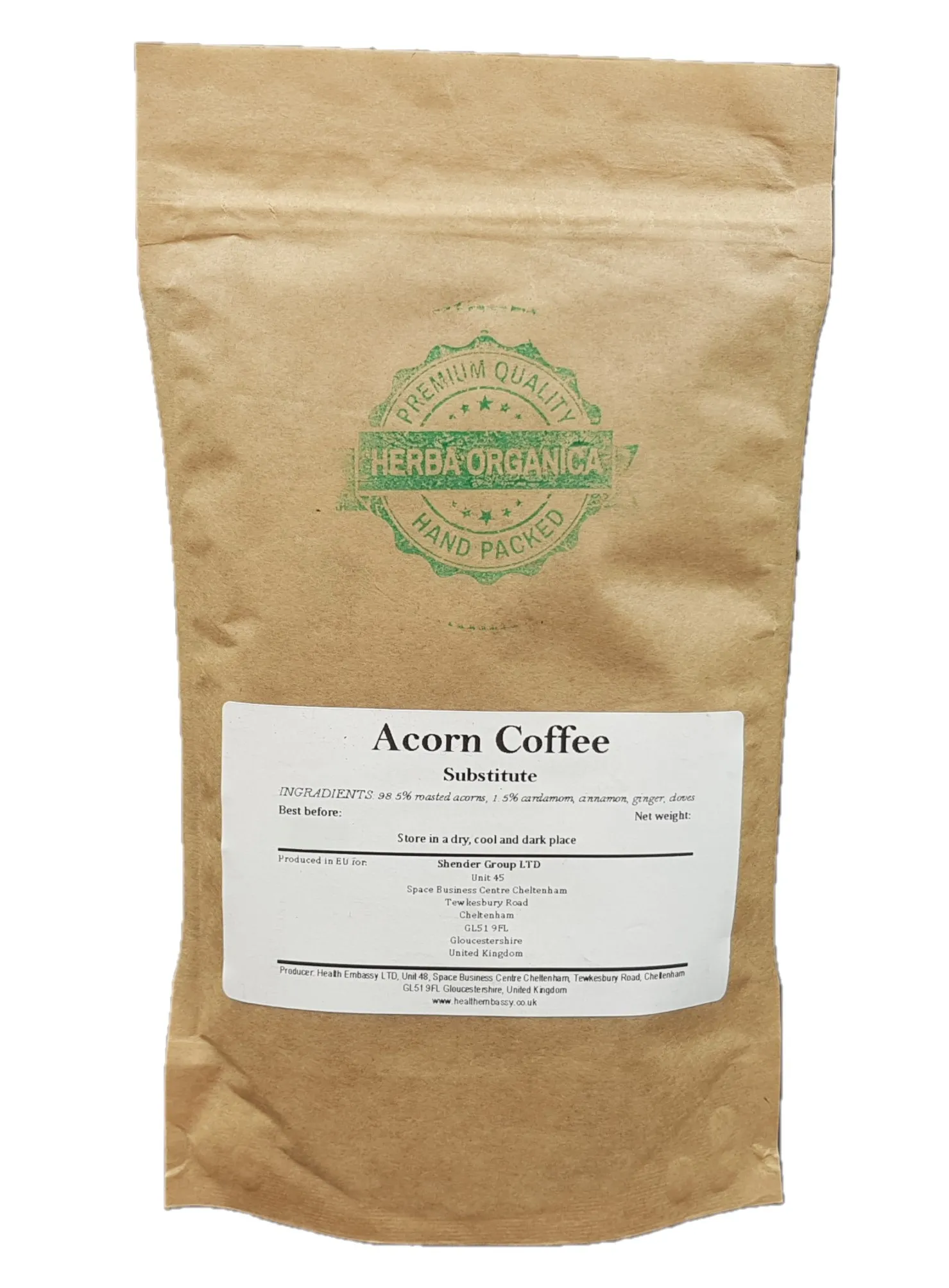 Acorn Coffee Substitute Herba Organica is a finely ground roasted acorn product with a small addition of traditional warming spices (cardamom, cinnamon, ginger and cloves). It brews into a dark, aromatic drink that has become a popular everyday alternative to regular coffee for thousands of customers across the UK and all over the world. The complete absence of caffeine means you can enjoy it morning, afternoon or late evening without any stimulating effect.